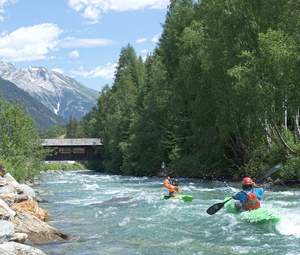 Auch Ute und Steve haben ein Motto: „We only have one life, we have to enjoy it!“ Dafür sind sie am Arlberg genau richtig und sie genießen es, nach ihren weltweiten Touren wieder zur Heimatbasis zurückzukehren: „Es ist ein Geschenk, ein so tolles Skigebiet und so viele Flüsse in der Nähe zu haben. Die Rosanna ist eher technisch und hat kontinuierliches Wildwasser, am Lech ab Steeg ist es etwas gemütlicher, die Sanna ist ein einmaliger Fluss für fortgeschrittene Kajaker und am Inn findet man große Wellen und wuchtiges Wildwasser.“ Für Ute, die verwurzelte Tirolerin, wäre es nicht in Frage gekommen, Steve nach England zu folgen. „Die Berge und Flüsse würden mir zu sehr fehlen!“ Zum Glück vermisst Steve am Arlberg nichts. Wenn er seine Eltern in England besucht, bringt er allerdings immer ein wenig Geschmack aus seiner alten Heimat mit: einen Brotaufstrich namens Marmite, Senf und Tee.