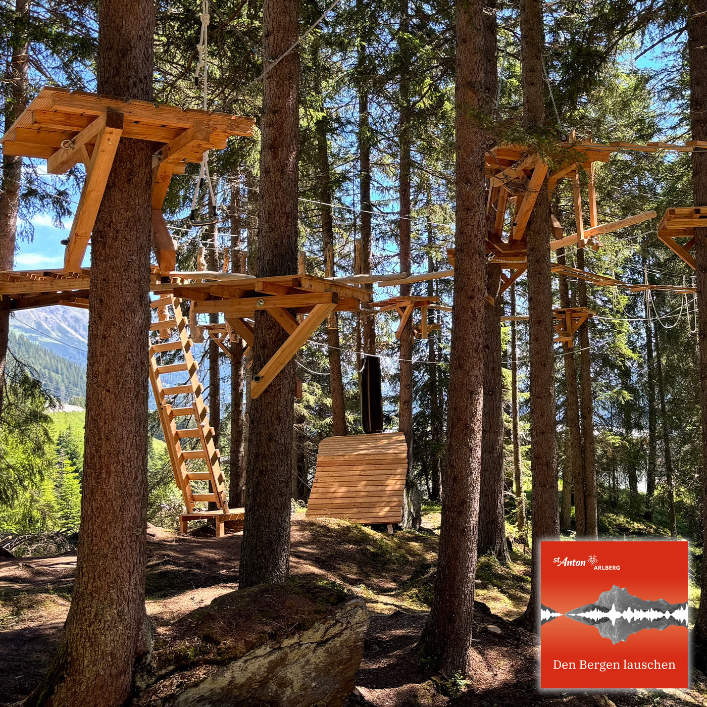 Uff - Schnauf… Uff, OK - Tja so hört sich das an, wenn ich mich auf meinen ersten Gang in St. Antons neuer Sommerattraktion begebe - Gemeint ist der Waldseilgarten am Beginn des Erlebnistal Verwall. Damit herzlich Willkommen zu „Den Bergen Lauschen“ dem Podcast der Region St. Anton am Arlberg. Der Waldseilgarten ist ein Hochseilkletterpark oder ein „Mutspielplatz für Groß und Klein - wie Ihn liebevoll sein Betreiber Harry Wolf auch nennt. Der Waldseilgarten wurde zu Beginn der Sommersaison 2024 neu gebaut und eröffnet - Wir haben die Ehre gemeinsam mit Harry die ersten Schritte auf dem Einsteiger Parcour zu machen. Der Waldseilgarten ist somit eine weitere Attraktion und außergewöhnliche Aktivität die man im Frühling, Sommer und Herbst in St. Anton am Arlberg machen kann. Der Waldseilgarten liegt gleich am Beginn des Verwalltals und ist somit für jeden auch leicht und schnell erreichbar. Direkt neben der neuen Attraktion befindet sich auch das EldoRADo - ein Übungspark für Mountainbiker inkl. Pumptrack und E-Motocross Strecke, dem wir am Ende der Folge auch noch einen kurzen Besuch abstatten.