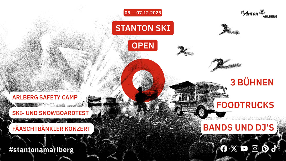 The Stanton Ski Open 2025 in St. Anton am Arlberg marks the official start of the winter season from December 5 to 7 – with a three-day festival full of highlights.